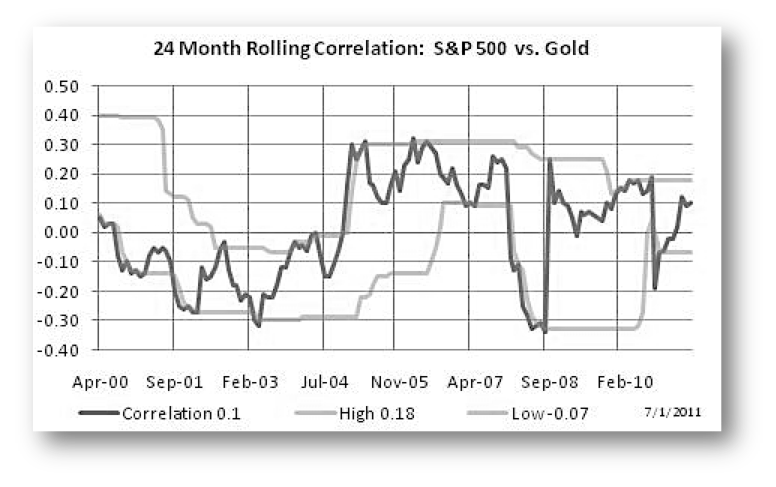 • The dark line plots the 24 month rolling correlation from early 2000 to current month.