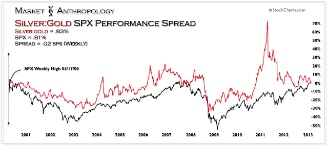 As we have been following over the past few months in our Connecting the Dots series – the silver:gold ratio’s performance spread (as measured from the start of the secular bear market in March 2000) has now contracted to only .02 bps above the SPX as of yesterday’s close. This is the narrowest spread for this reflationary measurement of the equity market rally that began in March 2009. In the past (2000 & 2007), when the silver:gold ratio’s performance has “inverted” below the SPX’s, this has indicated the start of another cyclical leg lower in the equity markets.