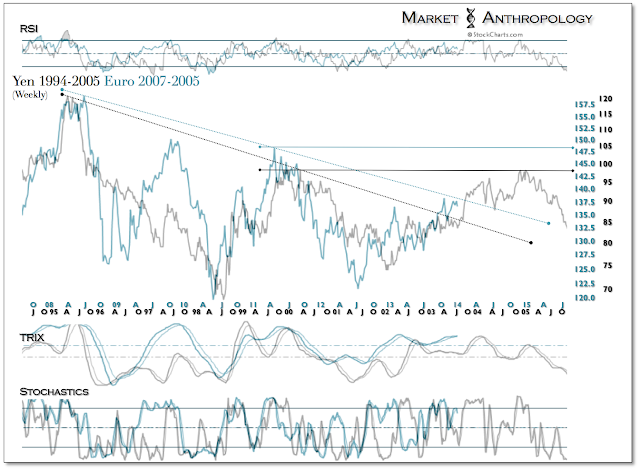 Over this past summer and fall we contrasted a comparative guide for Spain from its previous breakout leg from 2003-2004 (see Here) that presciently placed the current market very close to where it currently resides. Today, however, we recognize the considerable hurdles for these southern European economies and governments and expect the next chapter could be less sanguine and more along the lines of what has become a guide for us for the enigmatic euro and Europe’s broader deflationary and structural hurdles – namely Japan, circa 2003/2004. Although we are more agnostic with our long-term outlook on Spain than outright bearish, we suspect the consolidation range will continue before the possibility of a resumption of trend higher.