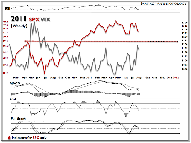 While I don’t think the US is headed for a recession on its own accord (although the politicians are certainly doing their best to point us that way), I can’t rule out that the sovereign debt crisis in Europe won’t spill over in the near term and metastasize with contagion tentacles to drag us to the edge of one ourselves. One analog that I have been carrying around in my files because of the similarities in price structure, market sentiment and macro condition, is 1998.” 1998 Redux