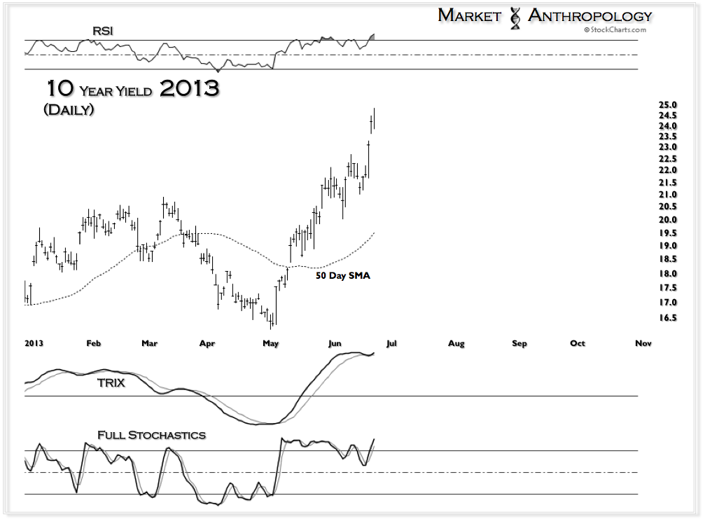 In the wake of another Fed decision, frustrations quickly flared and friction was lost across the board in most asset classes. If you weren’t hedged, long the dollar or in cash, a paper cut quickly became an open lesion. Although par for the course these days, confusion swirled after parsing the Fed’s statement and what Bernanke had implied towards monetary policy in the future. Weighing the market’s response and even Bernanke himself conveying he wasn’t worried about the rise in rates to-date, the pivot in expectations the markets had initially made in May towards a tapering of monetary stimulus – held its course.