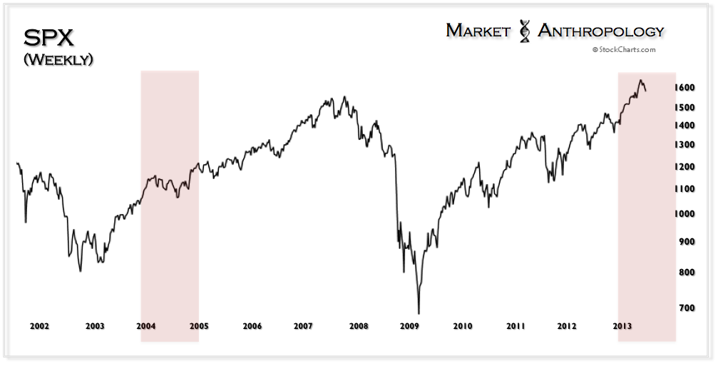 Back in April of 2011 we had noted the similar reflationary waves instigated and nurtured by the Fed as The Congruent Market Theory. Granted, at that time we had compared the monetary and equity environments to 2004 due to our expectations that the Fed would let the economy stand on its own two feet after QE2 concluded. Of course, QE2 wound down in the first half of 2011 and the equity markets quickly chocked on indigestion from the confluence of a US debt downgrade and another firestorm in Europe.