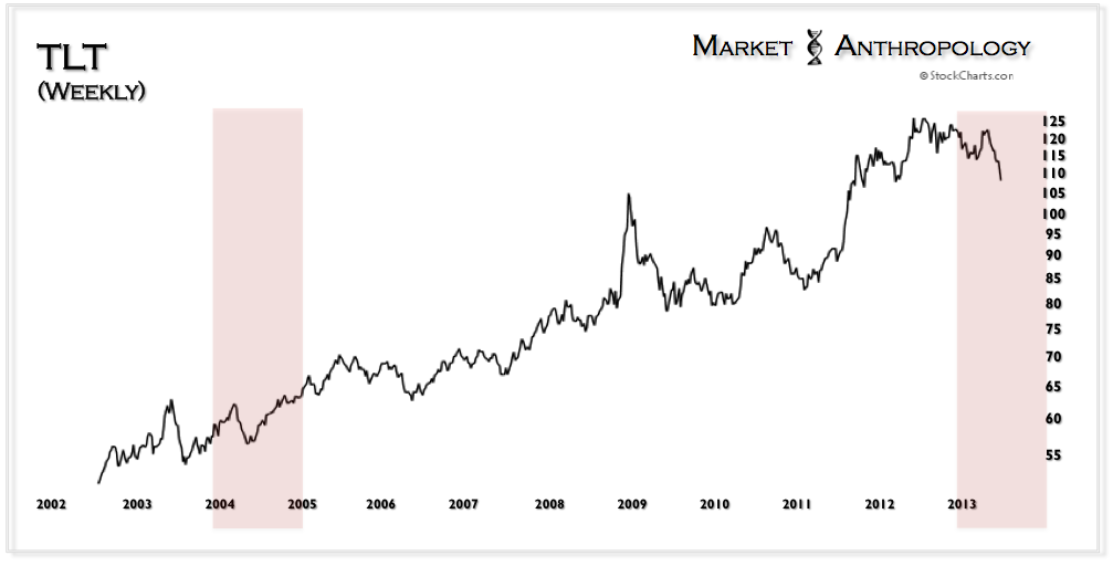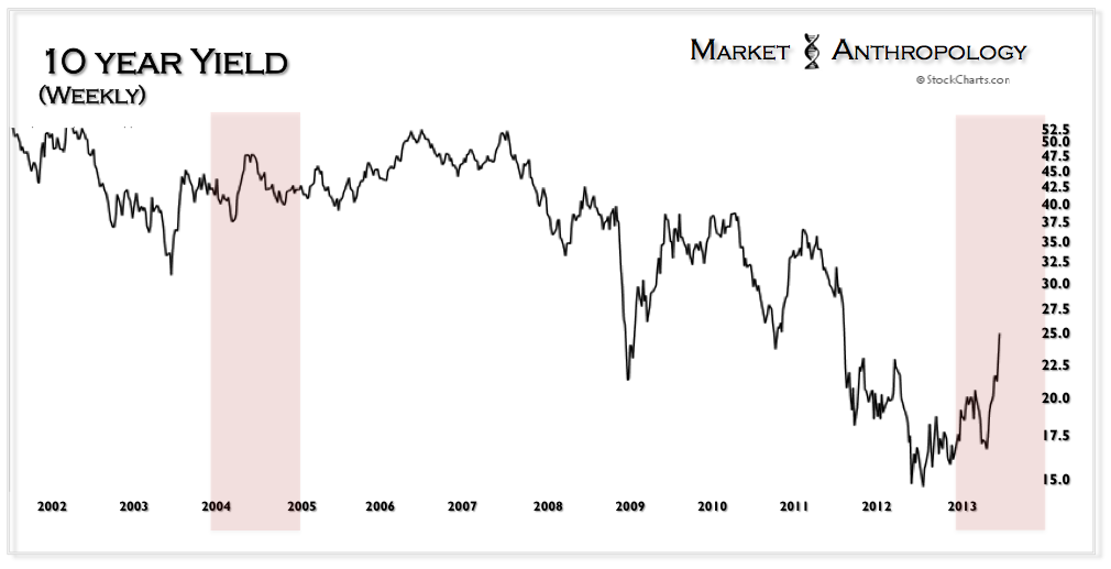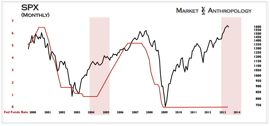 Despite what some may believe, the decrease in monetary accomodations has historically been met by the equity markets as near term bearish but longer term bullish. This was the case in 1994 – as well as in 2004.