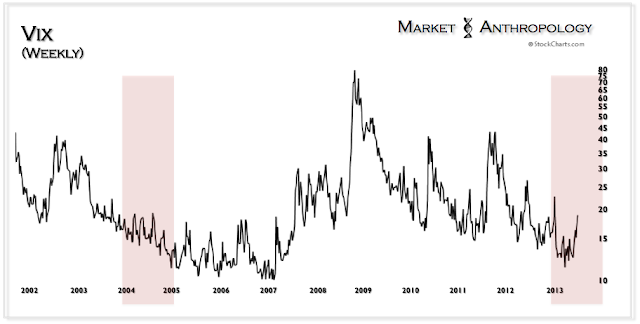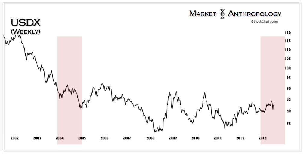 Back in April of 2011 we had noted the similar reflationary waves instigated and nurtured by the Fed as The Congruent Market Theory. Granted, at that time we had compared the monetary and equity environments to 2004 due to our expectations that the Fed would let the economy stand on its own two feet after QE2 concluded. Of course, QE2 wound down in the first half of 2011 and the equity markets quickly chocked on indigestion from the confluence of a US debt downgrade and another firestorm in Europe.