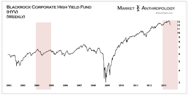 Once again nothing has really changed expect the proportions have expanded even further, and perhaps this time around (and as was the case in 2004) – assets such as Blackrock’s high-yield fund have reached their high water mark for a spell.