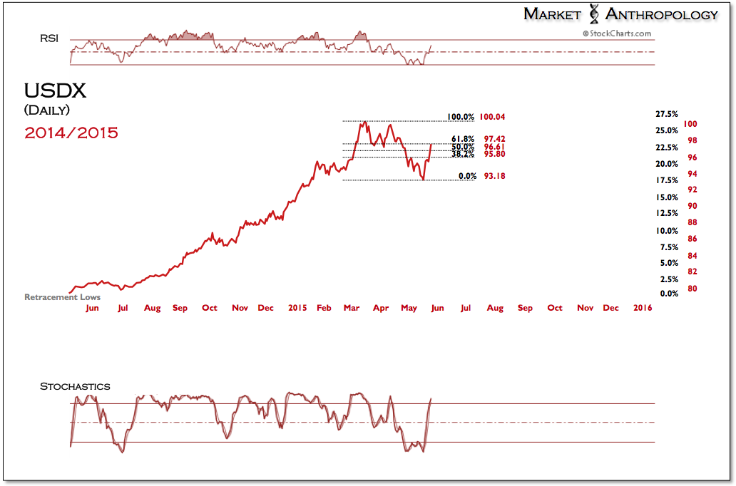 Through Tuesday’s close, the USDX has retraced 61.8% of the current move.