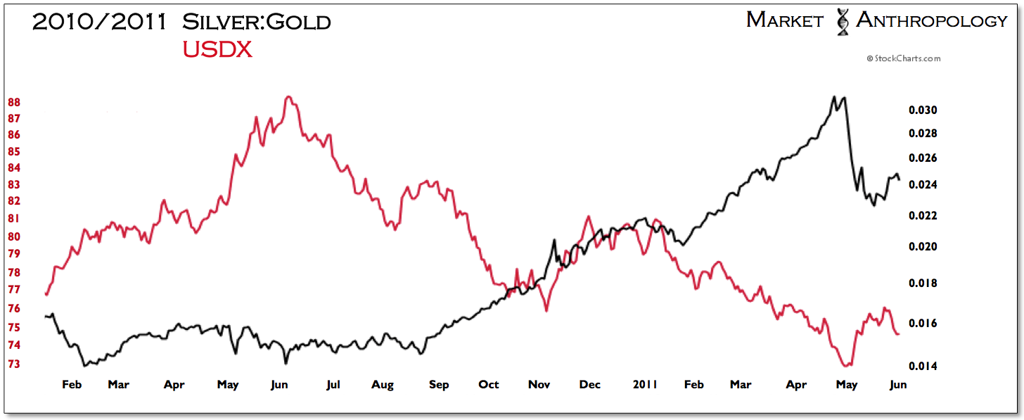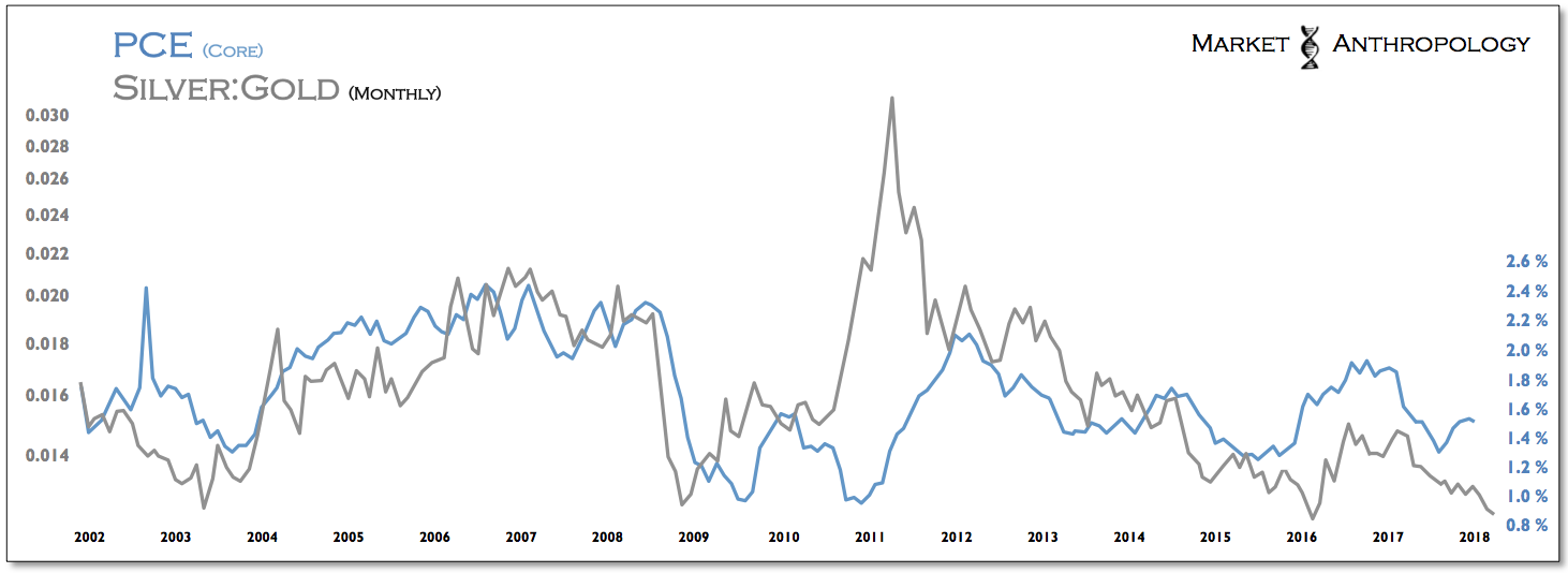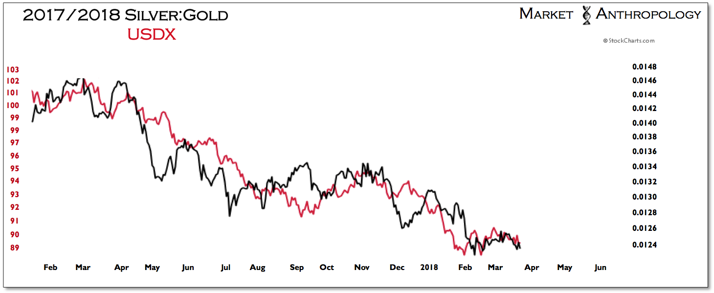 That said, should these concerns be misplaced, we will be looking for gold to rally staunchly above the previous highs and not look back. Additionally, we would also like to again see silver begin to outperform gold, as it typically has under greater inflationary pressures. What’s interesting to note is that since the dollar’s breakdown over the past year, the silver:gold ratio has trended lower with the dollar, very much displaying the opposite dynamic of what was found between 2010 and 2011, where the dollar was plumbing the trough of its long-term range and silver cresting at a cyclical high. All things considered, we will be closing watching how precious metals behave over the next several weeks for greater intermarket insights.