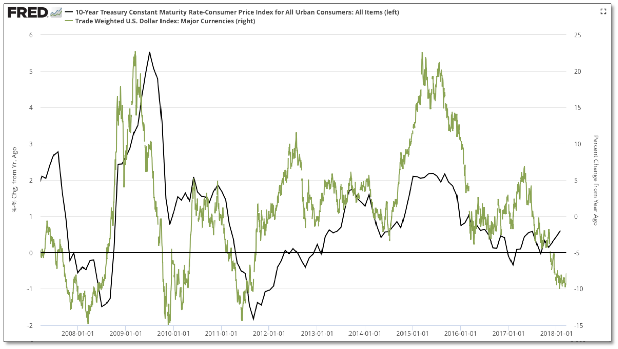 The idea that a late cycle pulse of inflation could surprise to the upside was in part derived from our expectations with the US dollar and real yields, which did in fact roll over from their respective cyclical highs.
