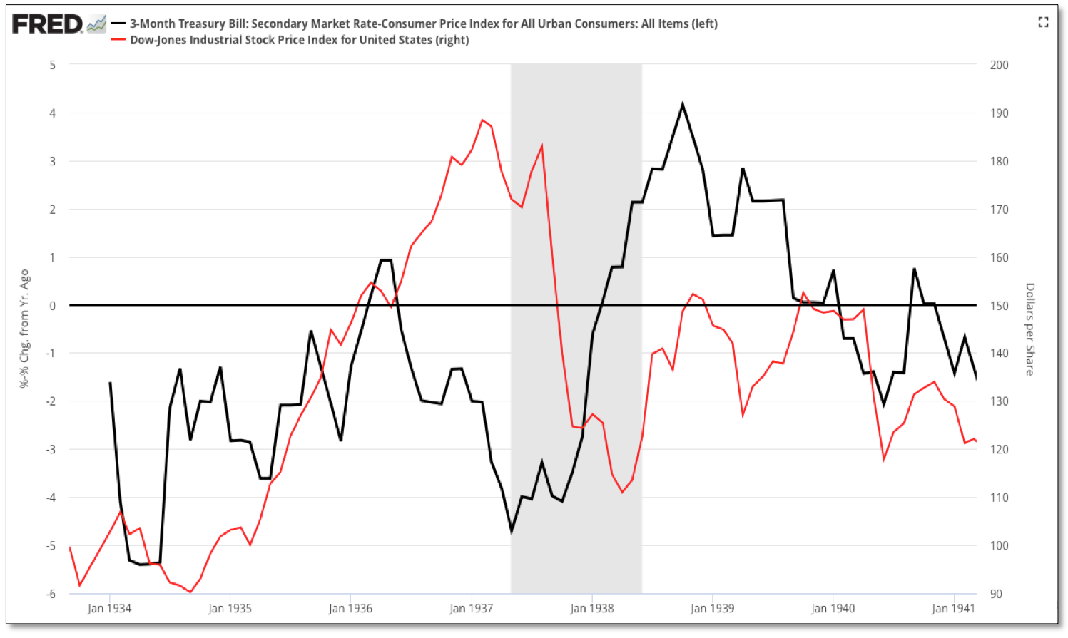 Following the second increase in reserves in March 1937, both short and long-term yields spiked. It wasn’t until the Fed tightened a third and final time in May 1937 that real yields began to trend higher, finally upsetting the ebullient swell in risky assets that had driven equities up 300 percent from the crisis lows of 1932.