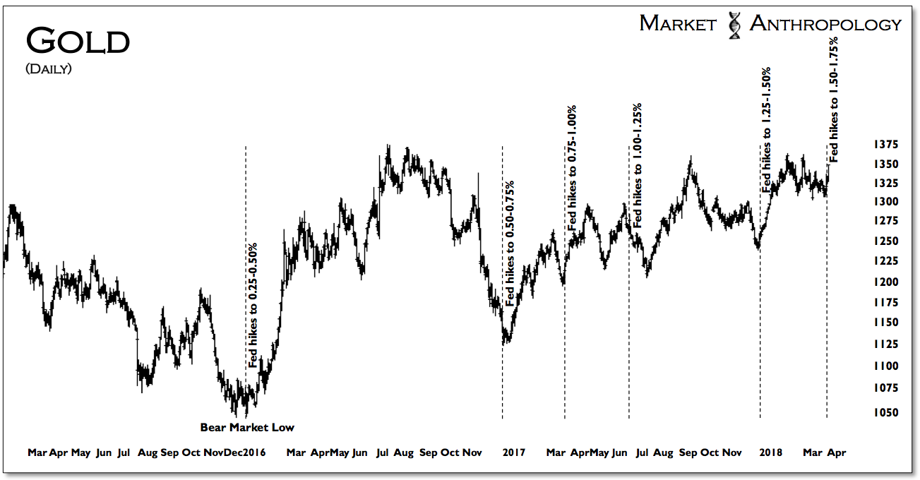 Consequently, we are looking for gold to once again test its cycle highs – as it has rallied to varying degrees several weeks out after each of the previous five rate hikes. Should our concern that inflationary pressures are easing and that real yields have more room to move higher over an intermediate-term timeframe, we suspect gold to trade only marginally around the July 2016 highs, with likely greater volatility developing before a more lasting retracement decline would begin. In this respect, it wouldn’t surprise us to see gold trade in a widening range between 1400-1300 over the next several weeks.