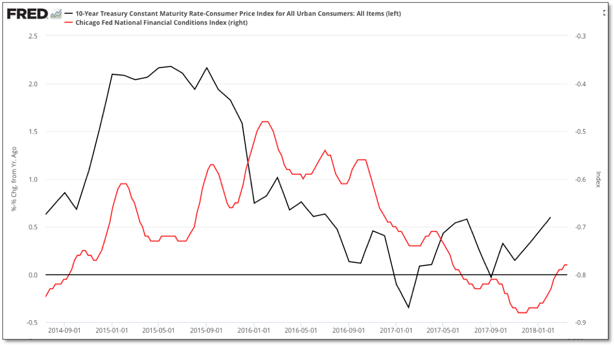 In fact, when we look back at the past two years where the Fed has moved off of ZIRP and away from the extraordinary policy accommodations extended after the global financial crisis, real yields and benchmarks of underlying financial conditions have broadly declined even as the Fed has raised rates – arguably, because inflation and growth expectations rose more.