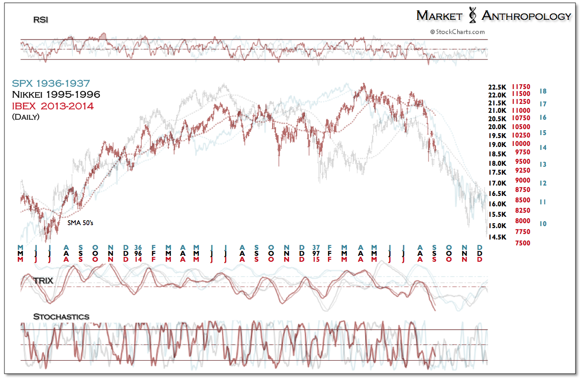 As we’ve noted over the past year, Draghi is attempting to avoid the policy missteps that plagued both central banks during the two major perennial asset unwinds over the past century. Both the Fed in late 1936 and into early 1937 – and the BOJ in 1997, worsened economic conditions by tightening monetary and fiscal policy, where they very likely should have eased. The outcome – as historians describe, contributed to the cyclical decline in both equity markets and a crushing blow to market confidence over the next decade.