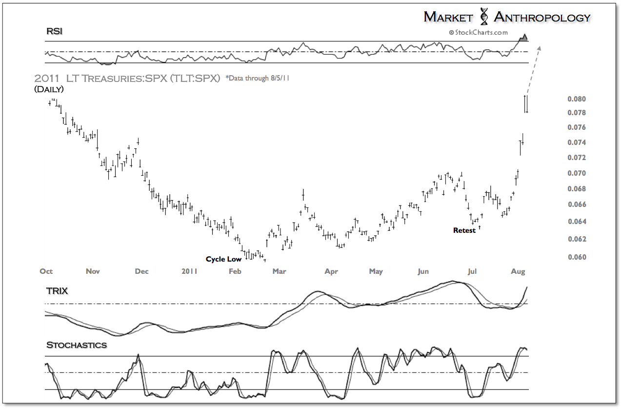 These set-ups are greatly divergent from what was present in 2011 as the Fed ramped – then wound down QEII. Back then, the commodity sector – led by silver and gold, had surged higher on the misplaced notion that inflation would rue the day because monetary policy was far too accommodative. The harsh reality was soon proctored by the markets which saw those assets closely tied to inflation expectations peak in the wake of QEII and begin a long disinflationary downturn and wide underperformance to the S&P 500.