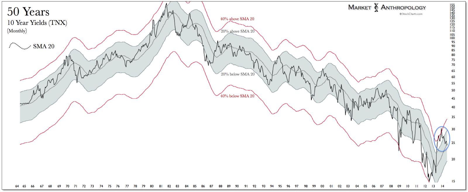 Tangent to the markets adjustments to transparency on both sides of the field is the realization that the Fed has conducted policy over the past five years from the mystical plane beyond ZIRP. At its basest level, we have argued (see Here) quantitative easing is about instilling expectations in the market, both from a structural and psychological perspective – beyond where conventional policy tools could apply. When the Fed began their fireside taper-talks last May, they tightened in effect through a pivot in expectations. On the Spinal Tap policy continuum that goes beyond the norm – they took the bold step and turned the volume down. Considering the move in 10-year yields that followed, this was largely confirmed by the market – and why we have contrasted the trend in yields throughout this year with the arc of the unexpected rate tightening cycle in 1994 and 1995 that capsized the bond market and reset expectations.