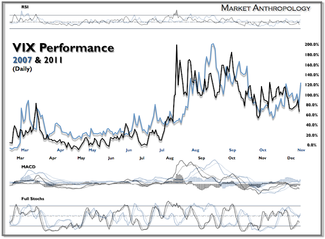Not surprisingly, both 2007 and 2011 have experienced very similar volatility expressions, as traders react to the second phase of the crisis – much as they did in 2007.